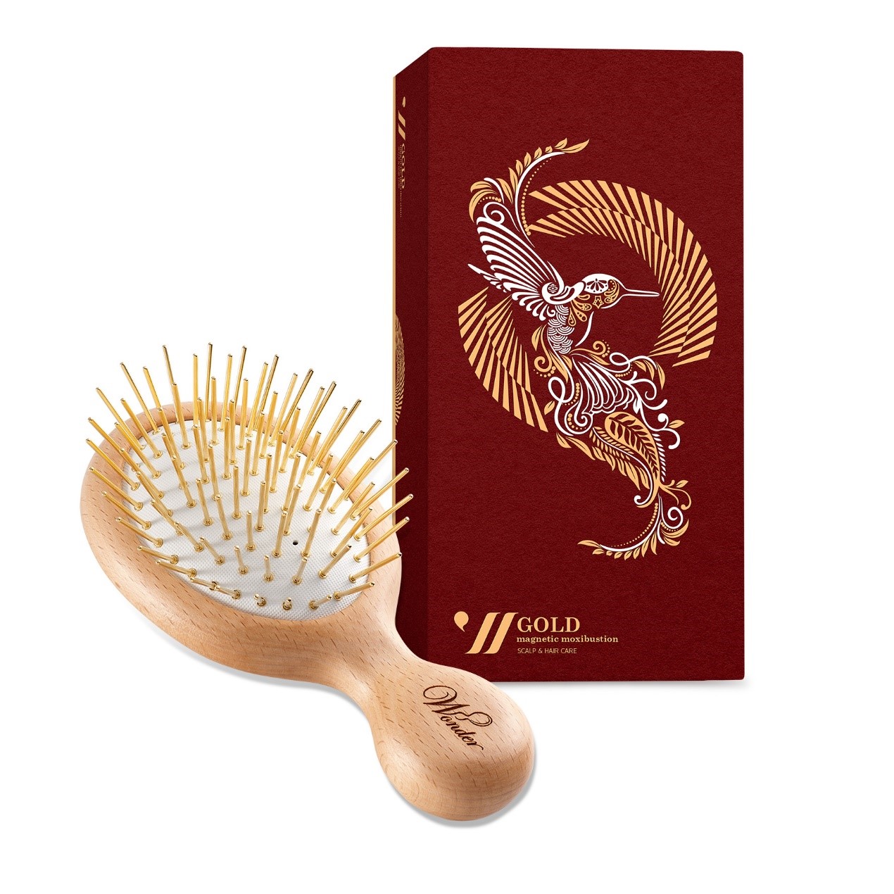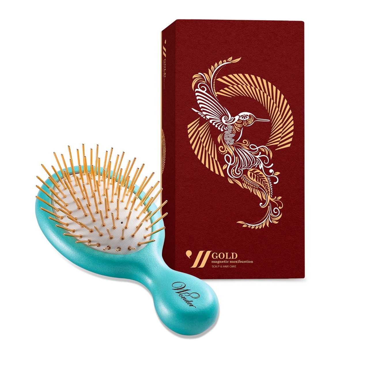 運用中國針灸穴道原理並結合自然磁力,每根梳針下都結合一顆磁氣石,79顆磁氣石透過每根梳針,梳理按摩頭皮,同時對穴位自然傳導,除了紓解壓力之外,更可促進血液循環活化毛囊、幫助提神,讓頭皮更健康。